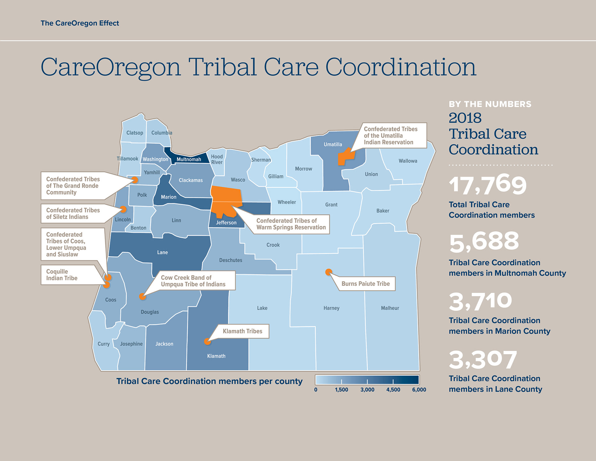 Map of the Tribes of Oregon for the CareOregon Annual Report 2018.